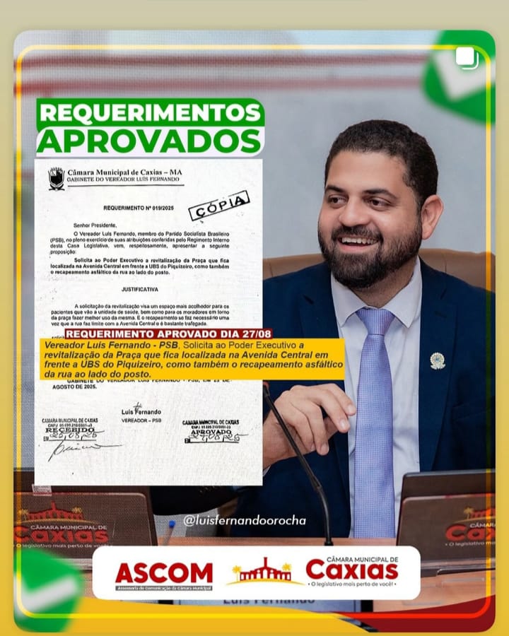 O vereador Luís Fernando (PSB), teve aprovado na ultima sessão plenária da Câmara Municipal de Caxias, um importante requerimento objetivando a recuperação da Praça Central do bairro Piquizeiro; um dos…